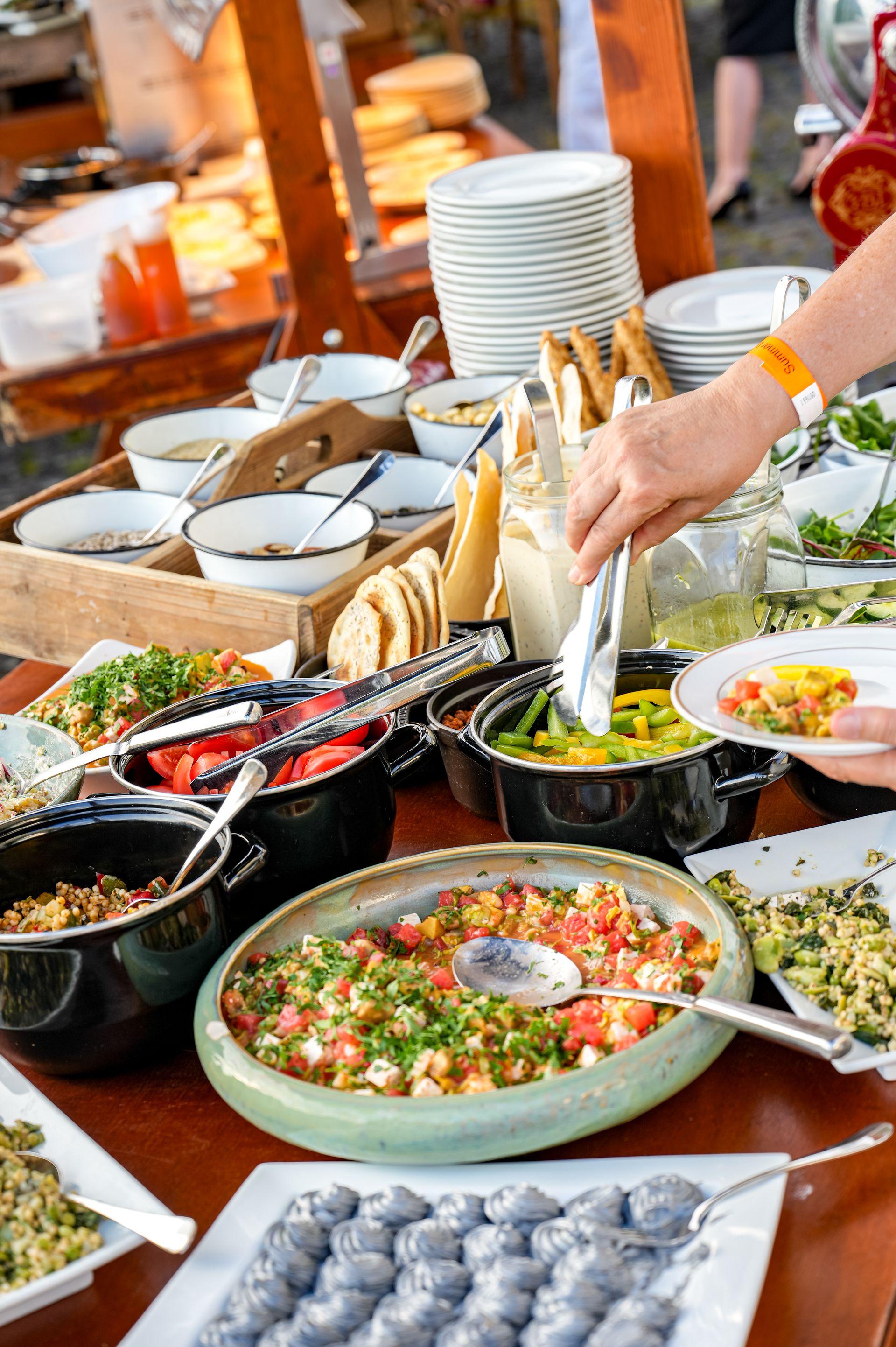 From 12:00 to 15:00, you can enjoy a varied buffet with seasonal specialities and a glass of sparkling wine as a welcome drink.